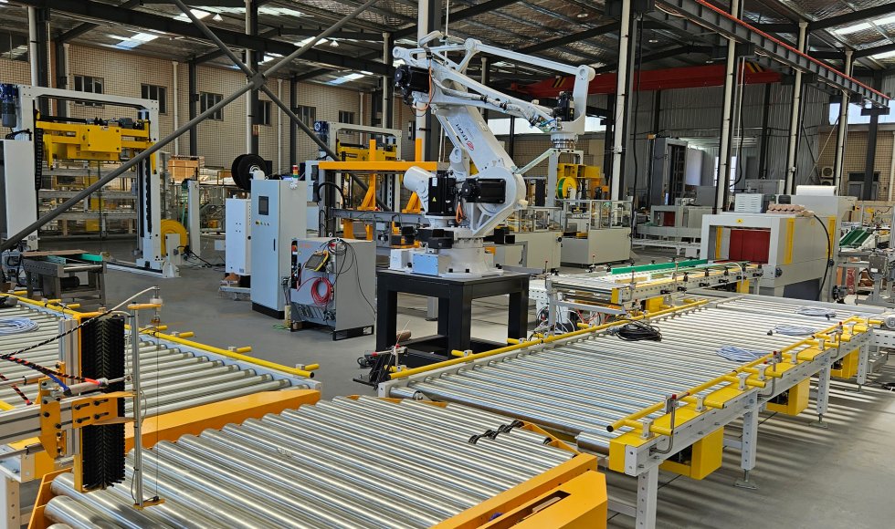 查看詳情燃料棒自動(dòng)套膜收縮碼垛包裝線,主要由輸送機(jī)、視覺(jué)識(shí)別、稱重剔除機(jī)、自動(dòng)整理、套膜收縮機(jī)、自動(dòng)供棧機(jī)、機(jī)器人自動(dòng)碼垛機(jī)、全自動(dòng)在線纏繞機(jī)等設(shè)備組合而成。